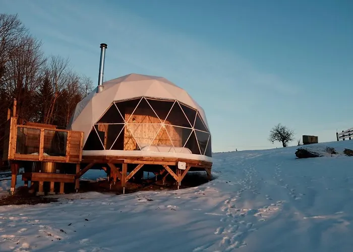 Mi-Clos - Luxury Pods With Private Jacuzzis Hotell, som ligger 6 km från Orford Arts Centre, erbjuder bubbelpool för gästernas avkoppling. Villan med 1 sovrum och 1 badrum, som har en terrass, ligger inom 3 km från Secteur du Lac Fraser.